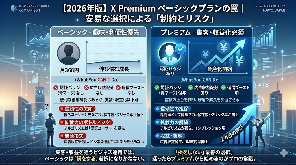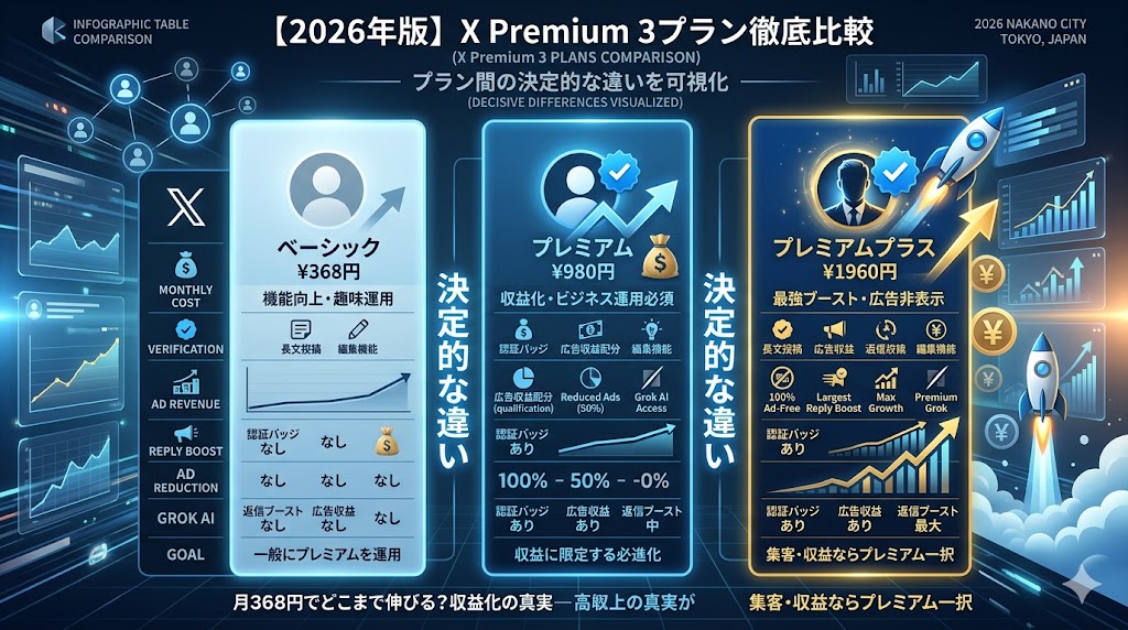 2026年のX運用において、プラン選びは単なる固定費の選択ではなくどの土俵で戦うかを決める戦略的判断です。